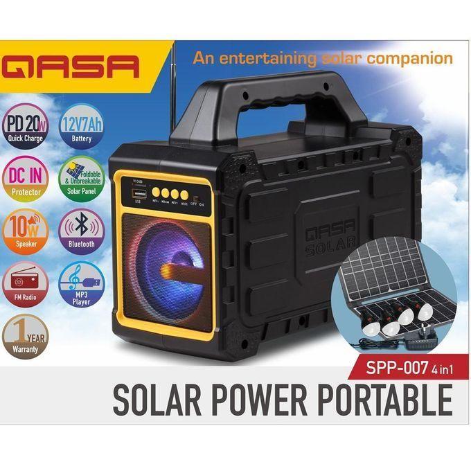 Introducing the QASA SPP-007 4-in-1 Solar Power Portable Station – your all-in-one backup power and entertainment companion. Designed for versatility, this compact powerhouse combines solar charging, Bluetooth speaker, FM radio, and MP3 playback into one durable device.